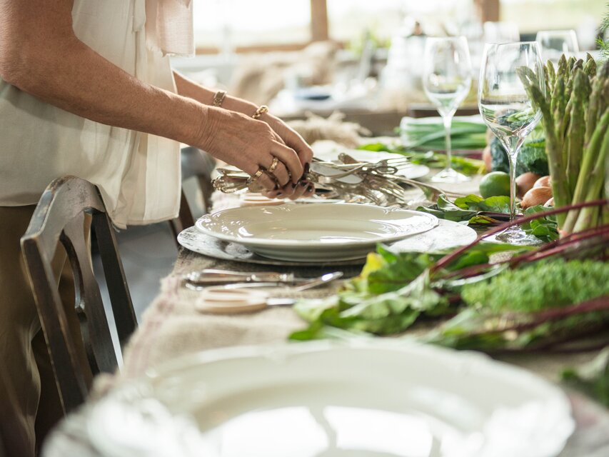 Bevor Du mit dem Eindecken beginnst, sorge dafür, dass Tisch und Stühle richtig positioniert sind. Achte auf ausreichend Beinfreiheit und stelle sicher, dass jeder Gast bequem Platz nehmen kann. Die Anordnung sollte so gewählt werden, dass sich alle Gäste gut unterhalten können und der Raum nicht überladen wirkt.