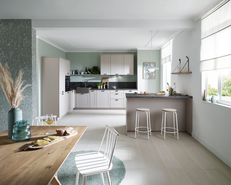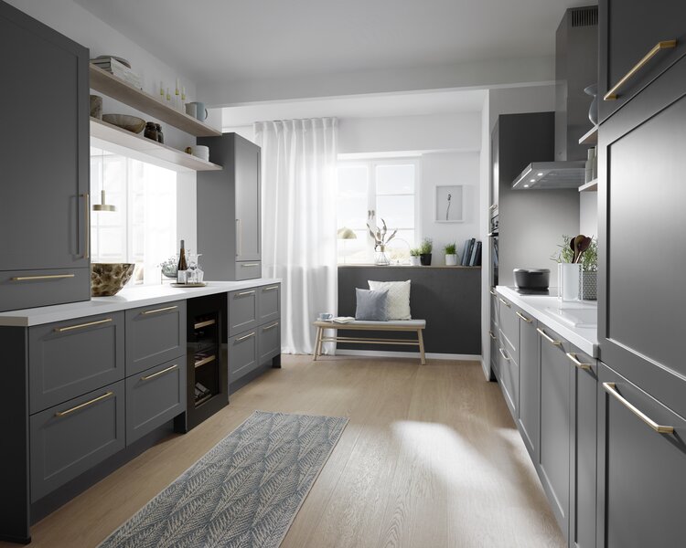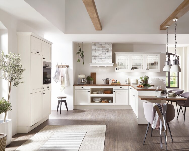 Nutze den Platz an Deinen Wänden. Anstelle von Wandschränken sind Wandregale eine wunderbare Möglichkeit, dekorative Gläser oder Dosen mit wichtigen Zutaten wie Reis, Haferflocken oder Nudeln zur Geltung zu bringen. Wie wäre es mit einem Regal für Deine heißen Getränke? Kaffee, Tee und Kakao sind immer griffbereit. Deine Lieblingstassen finden hier ein gemütliches Zuhause. Und das edle Geschirr glänzt auf einem Regal oder in einer Vitrine besonders schön.