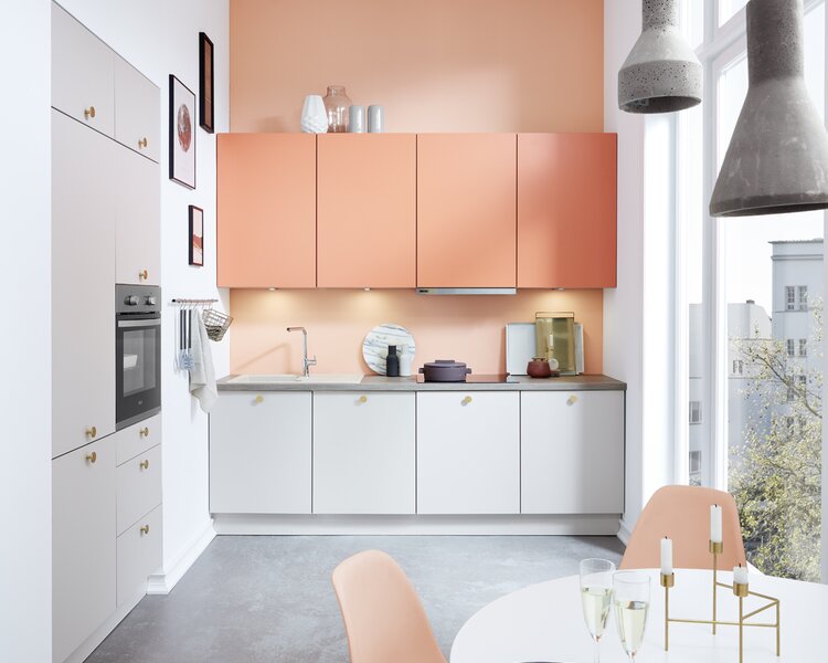 Wer viel Zeit in der Küche verbringt, weiß, dass eine schöne Küche einen großen Anteil an der Freude am Kochen hat. Besonders in kleinen Küchen bringen Farbtupfer ein ganz neues Aussehen und verwandeln sie in einen Wohlfühlort. Denn was in der Mode gilt, gilt auch für die Kücheneinrichtung: Gute Laune kommt mit Farben, die unsere Stimmung unterstreichen.