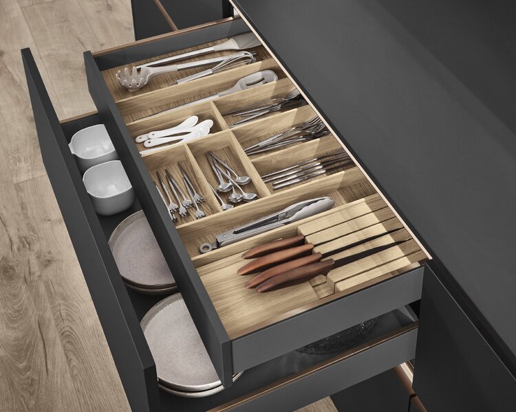 In der Küche gibt es eine Vielzahl an cleveren Ordnungssystemen, die Dir dabei helfen, Schubladen, Auszüge, Unterschränke und Hochschränke optimal zu organisieren. Diese Systeme ermöglichen es, Geschirr, Kochutensilien und Vorräte nach dem KonMari-Prinzip sichtbar und gut erreichbar unterzubringen. Diese innovativen Lösungen machen es einfach, selbst im hektischen Alltag den Überblick zu behalten und sorgen dafür, dass Deine Küche stets aufgeräumt und funktional bleibt. So wird die Küche zu einem harmonischen Ort, der Freude und Effizienz fördert.