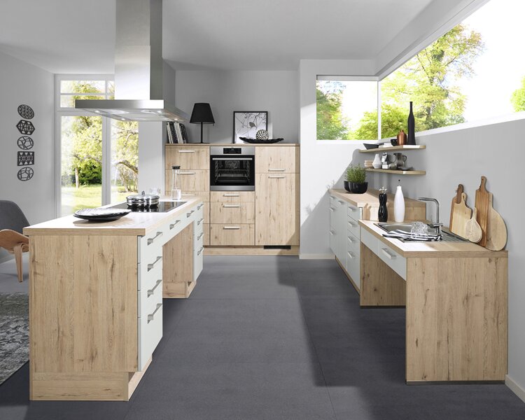 Große Schränke: Ja, genau, Du hast richtig gelesen! Möchtest Du den verfügbaren Platz in Deiner Küche bestmöglich ausnutzen, plane große Unterschränke mit Auszügen. Diese bieten nicht nur jede Menge Stauraum, sondern ermöglichen auch eine übersichtliche Aufbewahrung von Töpfen, Pfannen und Küchenutensilien. Durch die Auszugsmechanismen ist alles schnell zur Hand, und Du kannst den gesamten Platz bis hinten hin nutzen, ohne Dich in enge Ecken bücken zu müssen. So bleibt Deine Küche ordentlich und funktional, ganz ohne unnötige Verschwendung von Stauraum.