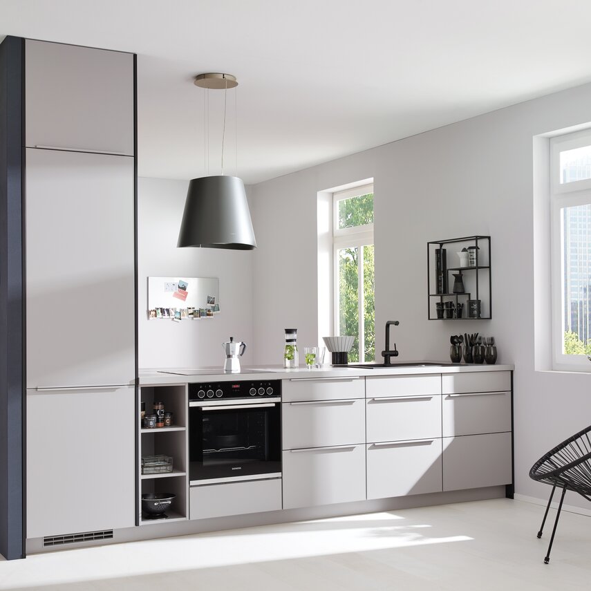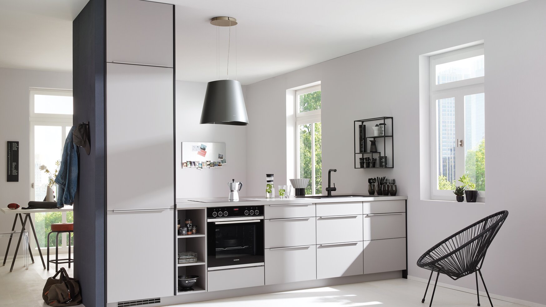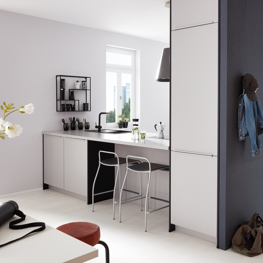 Urban, funktional und cool. Diese Küchenzeile ist der perfekte Ort für Junge und Junggebliebene, die hier nicht nur gemeinsam Kreatives kochen wollen. Hier wird diskutiert, gebrainstormt und es werden neue Ideen kreiert. Deshalb ist diese Küche von zwei Seiten zu nutzen. Als Kochplatz mit Freunden. Und als Arbeitsplatz. In ihrer Funktionalität ist sie modern und optisch geradlinig.