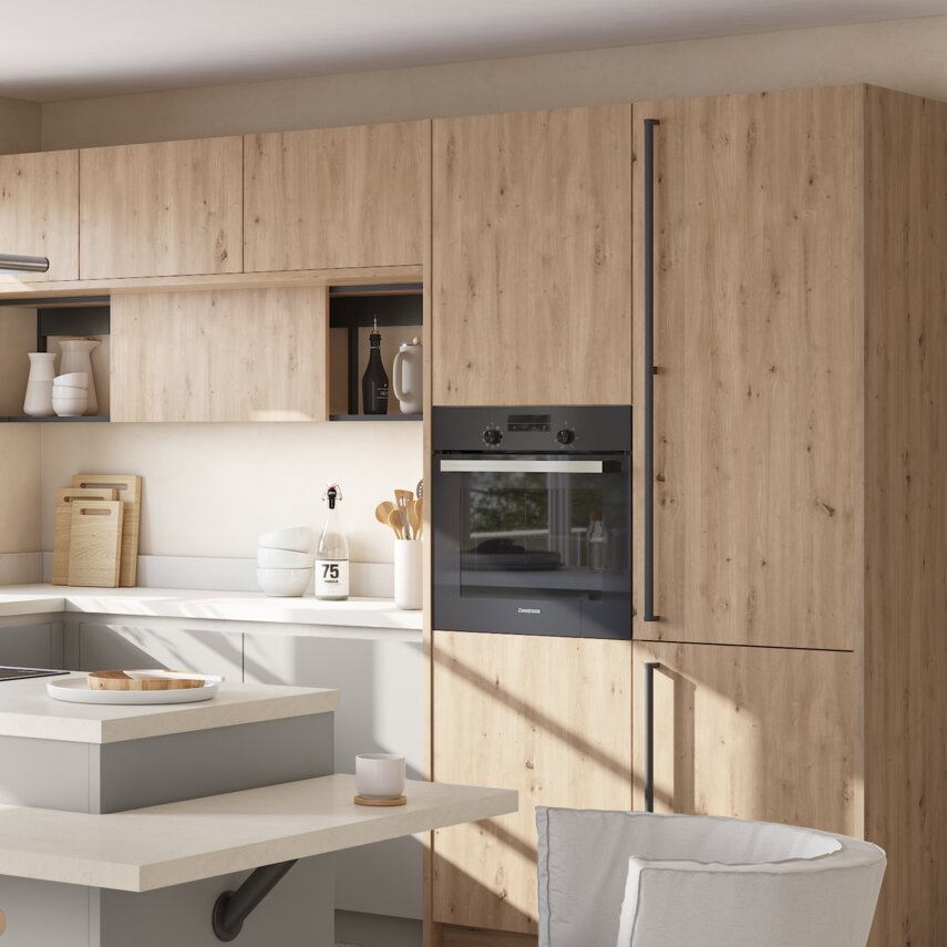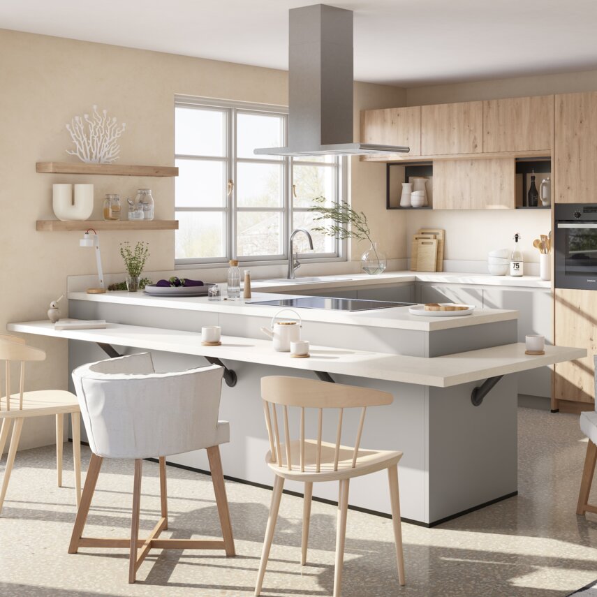 Kaschmirbraun und Wildeiche: Skandinavischer Hygge-Charme für eine Küche voller Gemütlichkeit und Stil.