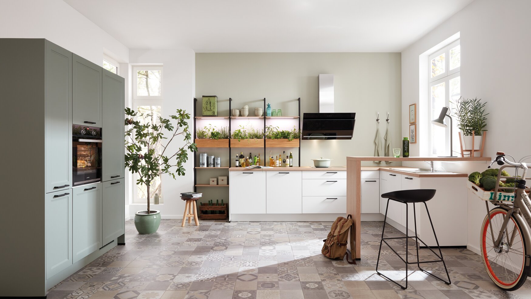 Diese Landhausküche ist mehr als nur der Ort, an dem gekocht wird. Sie verkörpert eine Lebenseinstellung: nachhaltig, bewusst und natürlich. In ihrer Anmutung ist die Einbauküche freundlich, frisch und leicht verspielt. Die hellen Küchenfronten geben ein luftiges Gefühl, die Kräuterregale bringen grünes Leben. Hier kommt man gerne zusammen, probiert neue Rezepte und hat eine gute Zeit.