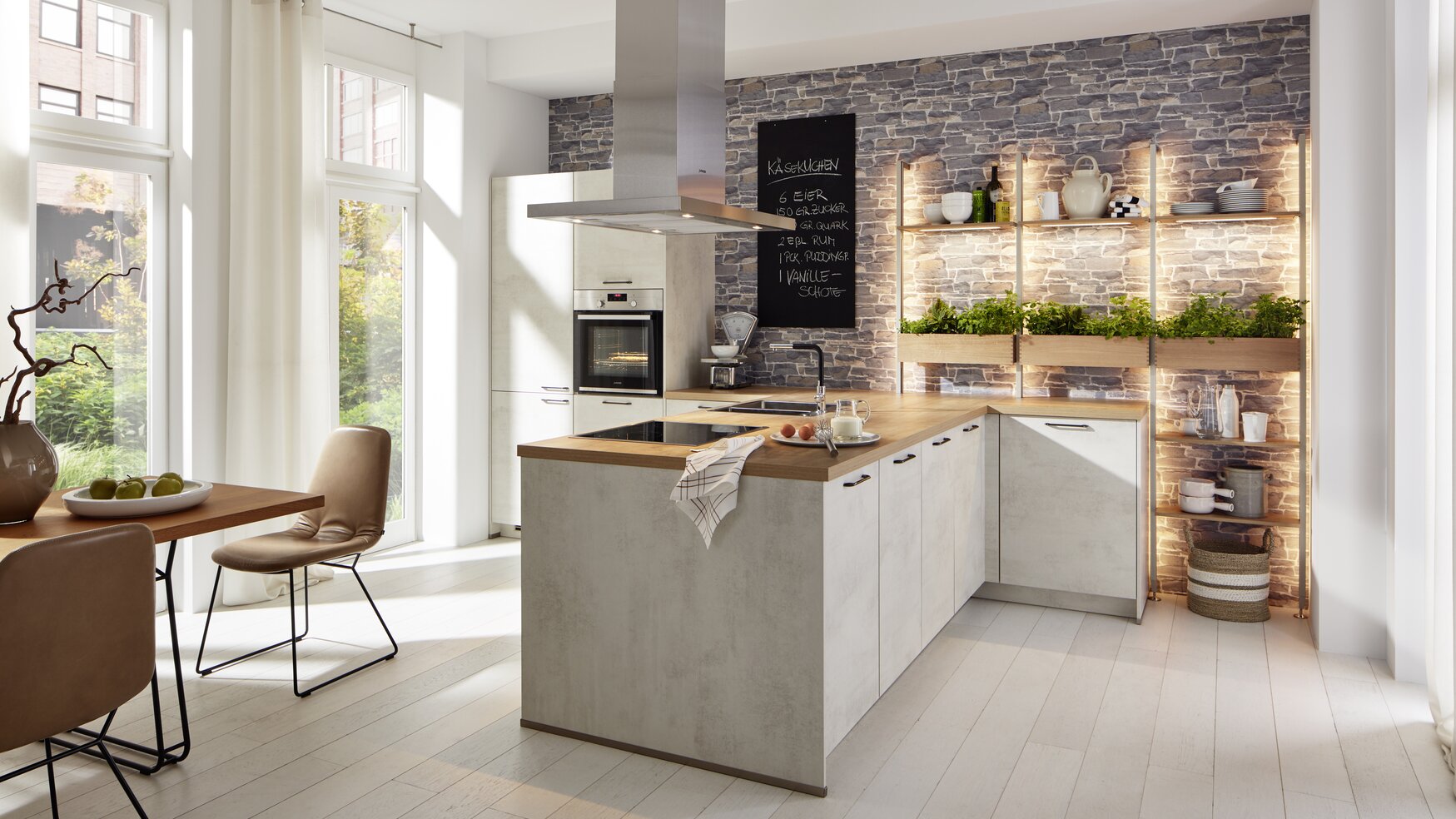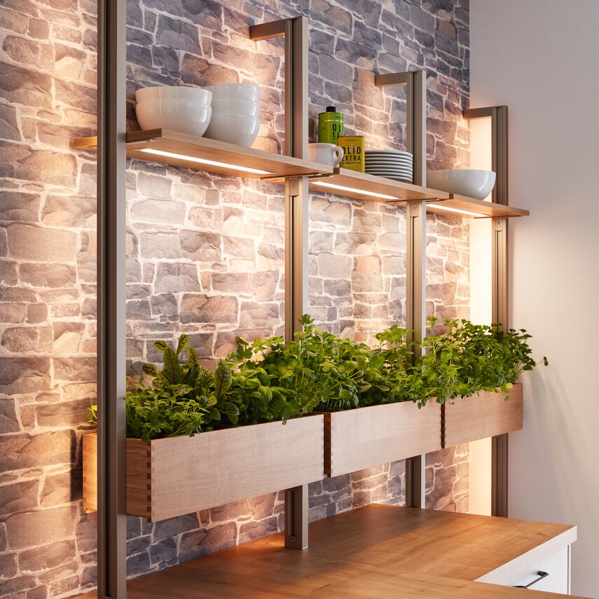Diese Einbauküche hat Geschmack! Das zeigt sich nicht nur in der freundlichen und hellen Konzeption mit natürlich anmutenden Materialien, sondern auch im integrierten Kräutergarten. Hier bietet die nachhaltige Küche viel Raum für frisches und aromatisches Grün, damit Du immer das Beste aus Deinen Lieblingsrezepten machen kannst. Sie ist der perfekte Ort, um kreative Gerichte mit einem Hauch von Natur zu kreieren.