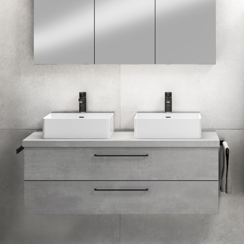 Dieses Bad begeistert mit seiner coolen und lässigen Atmosphäre – ein stylisher Rückzugsort in Betonoptik und Carbon. Die verschiedenen Grautöne sind perfekt aufeinander abgestimmt und schaffen eine harmonische, urbane Ästhetik. Die Betonoptik unterstreicht den modernen Industrial-Charme, während die Details in Carbon eine edle und zeitgemäße Note hinzufügen. Scharfe Linien, klare Formen und ein durchdachtes Farbkonzept machen dieses Bad zu einem echten Design-Statement, das Funktionalität und Stil perfekt vereint. Ein Badezimmer, das Coolness neu definiert!