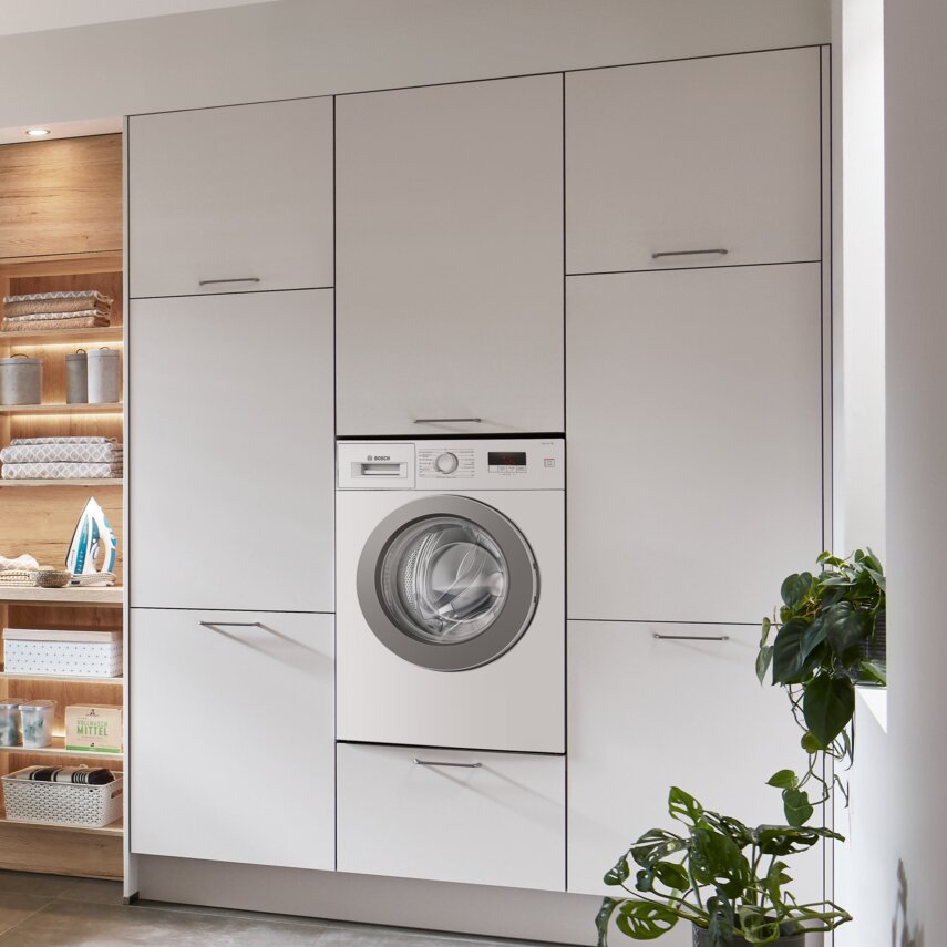 Selbstverständlich kannst Du alle unsere Hauswirtschaftsräume ganz nach Deinen Wünschen individualisieren. Ob Du andere Fronten, spezielle Griffe oder eine besondere Arbeitsplatte möchtest – unsere Küchenexperten im Küche&Co-Studio unterstützen Dich gerne dabei, unsere Hauswirtschaftsräume in genau Deinen Raum zu verwandeln, der perfekt zu Deinem Stil und Deinem Leben passt.