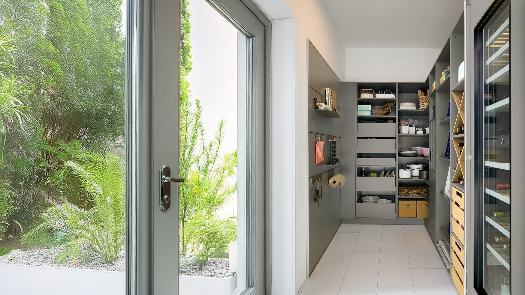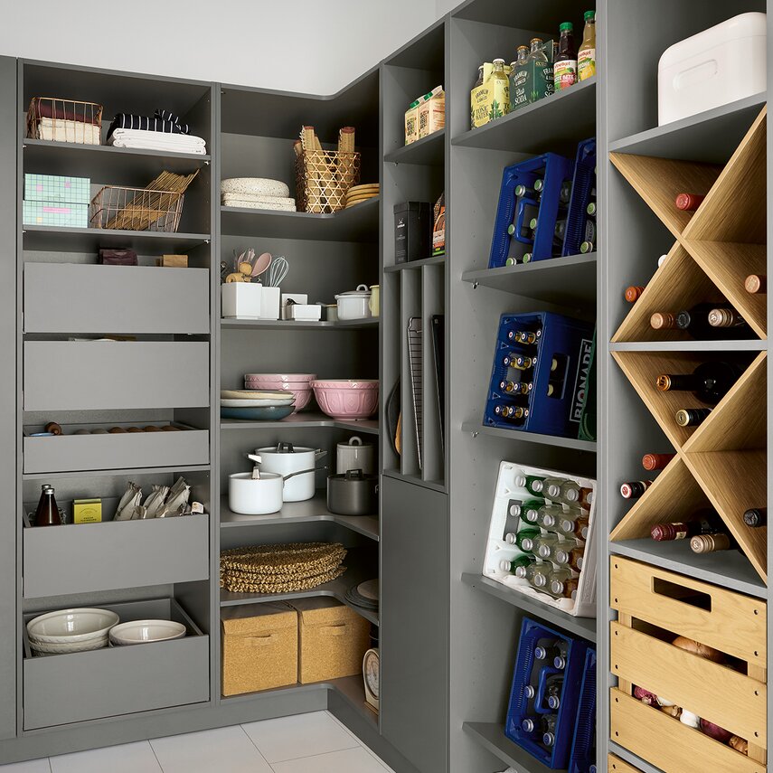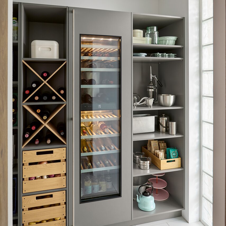 Genusszentrum Speisekammer: Lagerung für Lebensmittel, Wein und Küchenutensilien – alles griffbereit.