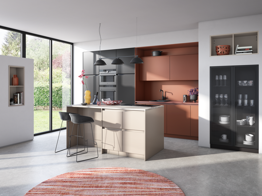 Lust am Kochen erwecken auch rote Küchen. Als belebende Farbe wird sie häufiger in Wohnzimmern genutzt, doch wird sie auch in der Küche immer populärer. Da viele Rottöne sehr grell wirken, solltest Du die Farbe trotz allem sparsam einsetzen. Andernfalls besteht die Gefahr, dass das Rot zu dominant ist und ein erdrückendes und raumverkleinerndes Gefühl erzeugt. Auch hier gibt es eine Reihe an verschiedenen Rotnuancen, die gut in eine Küche passen.