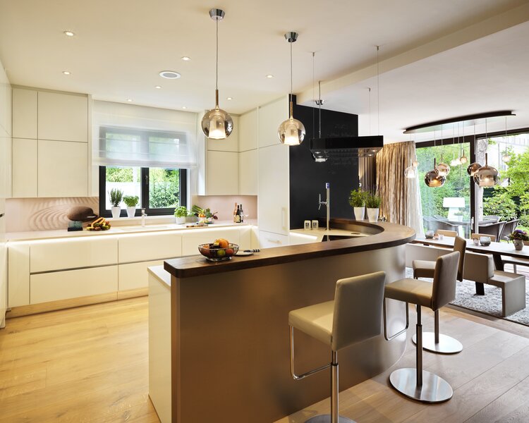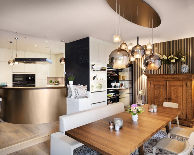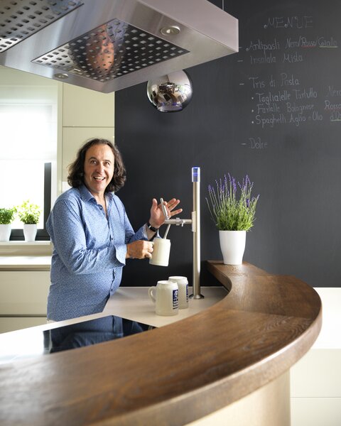 „Alles wirkt wie aus einem Guss“, schwärmt der Küchenexperte. Die Küche fügt sich perfekt in das Gesamtkonzept des Wohnraums ein und bildet gemeinsam mit Ess- und Wohnbereich ein stimmiges Ganzes. Offene Wege und großzügige Flächen sorgen für ein luftiges Ambiente, das Kochen, Wohnen und Geselligkeit ideal verbindet.