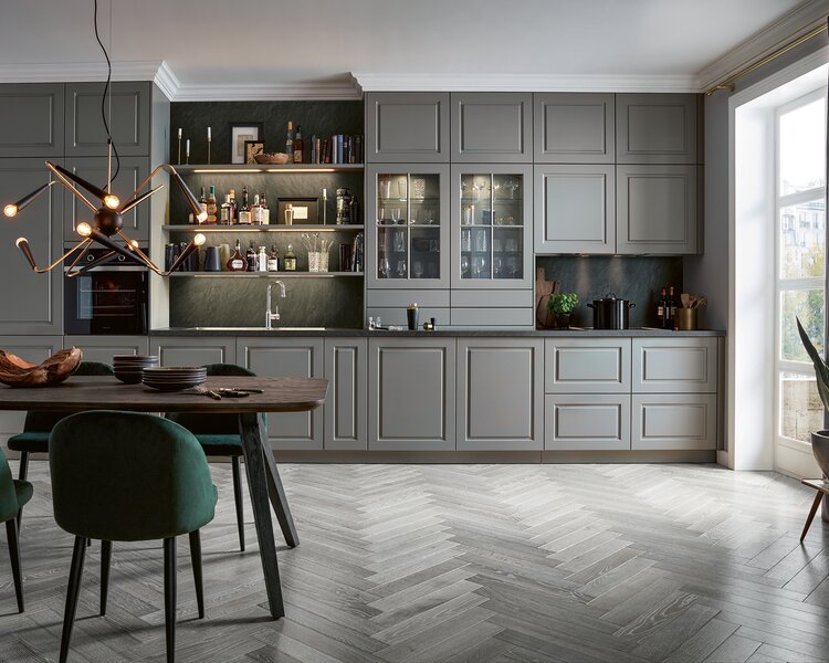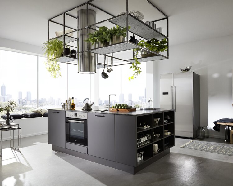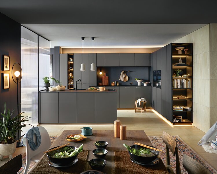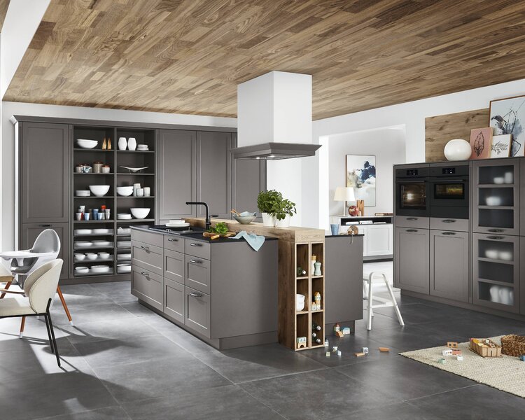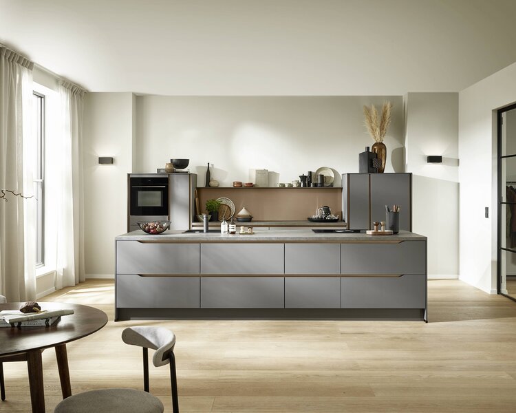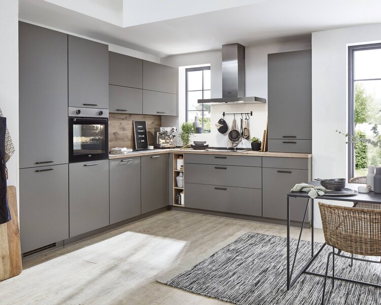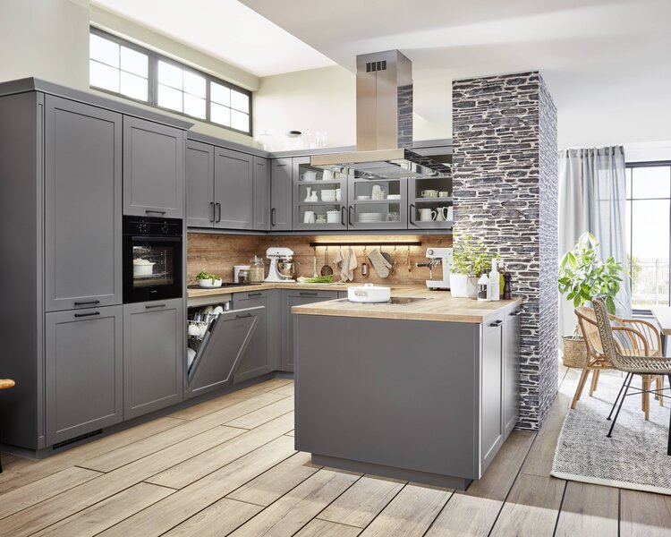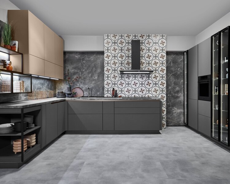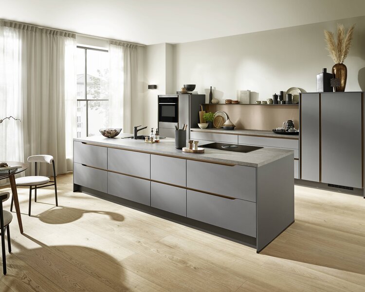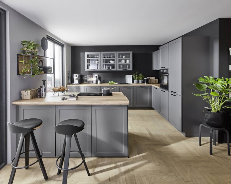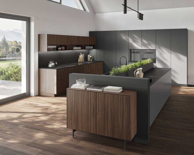 Anthrazit steht für Stil, Struktur und Stabilität – eine Farbe, die sich nicht in den Vordergrund drängt, aber Präsenz zeigt. Sie schafft eine perfekte Bühne für Materialien wie Holz, Stein oder Metall und ist damit eine ideale Grundlage für moderne Küchendesigns.