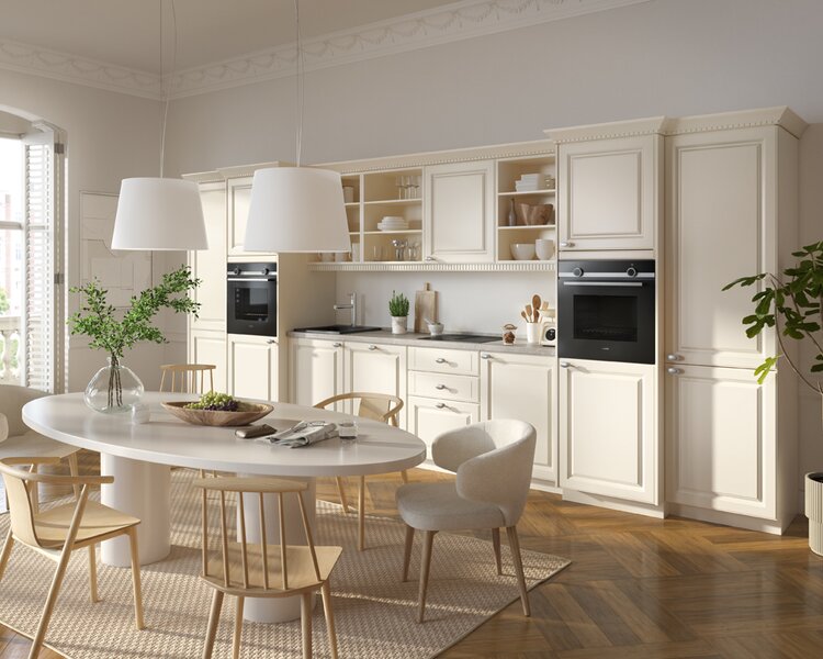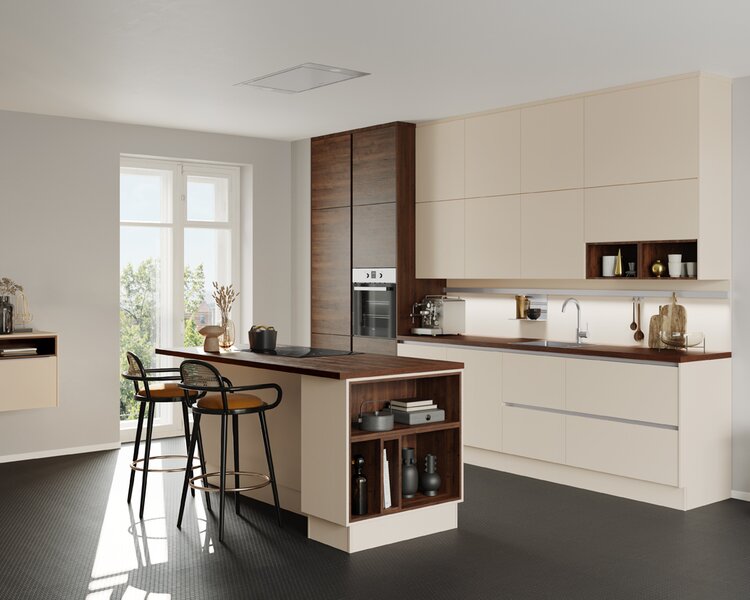 Cremetöne sind äußerst vielseitig und passen zu nahezu jedem Raumkonzept. Sie eignen sich sowohl für betont reduzierte und kleine Räume als auch für elegante, großzügige Küchen. Magnolie und Creme verleihen einem Raum Weite und Offenheit, während sie gleichzeitig, da sie nicht so kalt wirken wie reines Weiß, eine beruhigende Ausstrahlung haben.