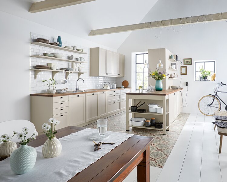 Creme und Magnolie sind sanfte Weißtöne, die durch eine Beimischung von Braun eine warme und einladende Atmosphäre schaffen. Im Gegensatz zu reinem Weiß wirken diese Beigetöne nicht unterkühlt, sondern strahlen eine angenehme Reinheit und Wohnlichkeit aus. Magnolie und Creme sind belebende, wärmende Farben, die geistig anregend wirken und durch ihren leichten Braunanteil zusätzlich Harmonie und Leichtigkeit vermitteln. Diese Töne wirken offen und luftig und sind daher ideale Farben für die Küchengestaltung. Besonders in einer Landhausküche verleihen sie dem Raum eine natürliche und heimelige Ausstrahlung.