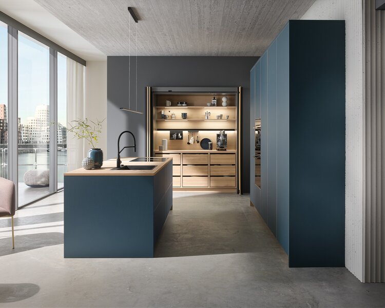 Der reduzierte Look bedeutet keinen Funktionsverlust. Hinter jeder Front steckt vollwertiger Stauraum, integrierte Geräte und durchdachte Arbeitsflächen. Clever geplante Mechanismen wie Pocket-Doors oder versenkbare Klappen lassen Arbeitsbereiche bei Bedarf öffnen und danach wieder verschwinden. So vereint die Küche maximale Funktionalität mit einem aufgeräumten Erscheinungsbild.