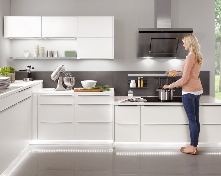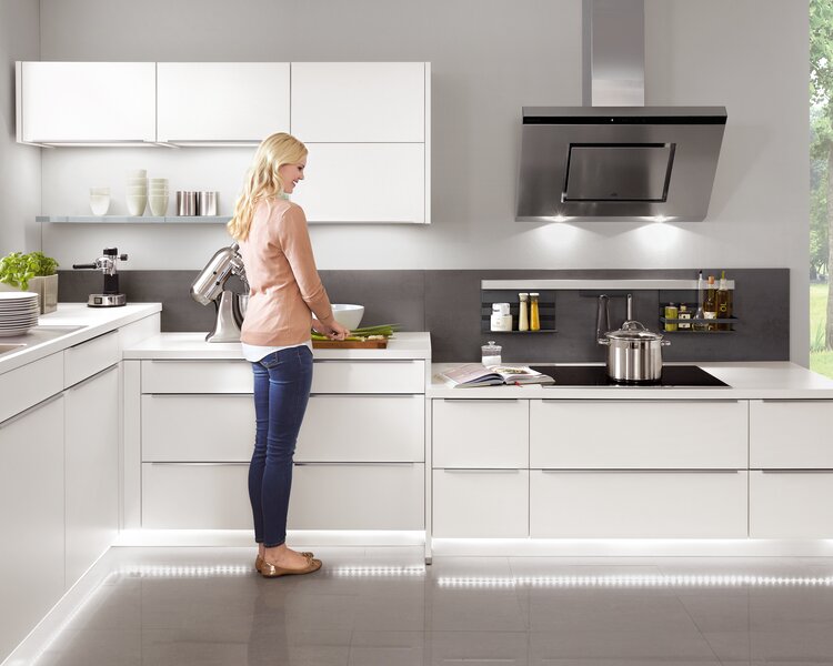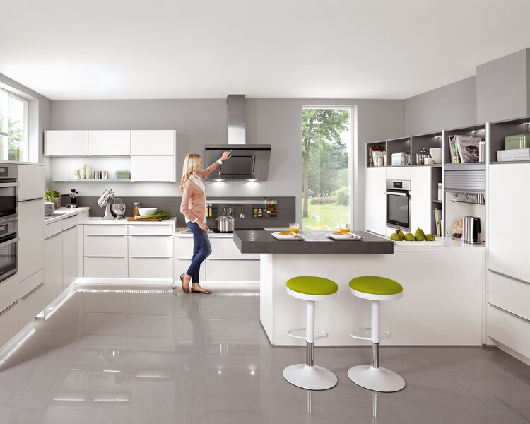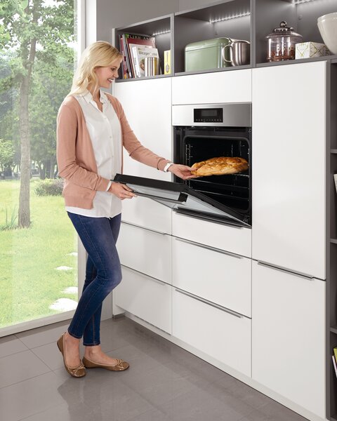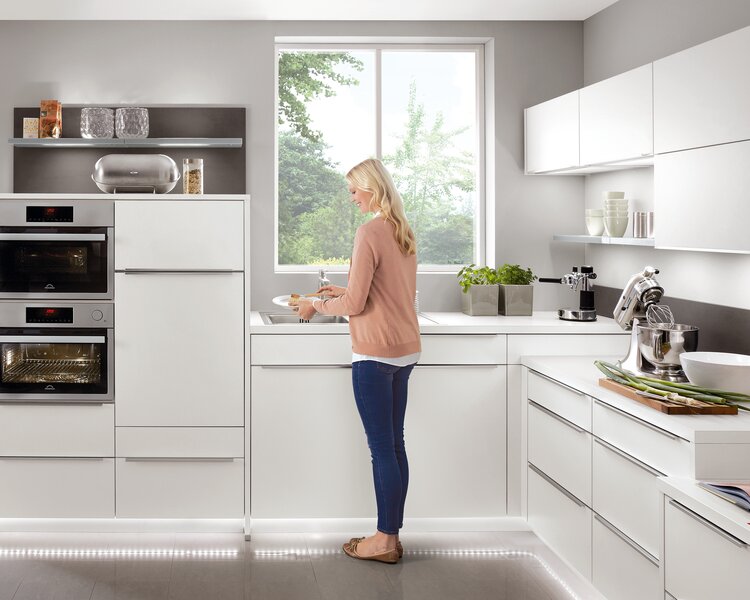 Plane Backofen, Kühlschrank und Geschirrspüler in bequemer Sicht- und Greifhöhe ein, damit Du alles mühelos erreichen kannst. Achte darauf, genügend Bewegungsfreiheit zwischen elektrischen und mechanischen Geräten zu lassen, damit Du Dich beim Kochen frei bewegen kannst.