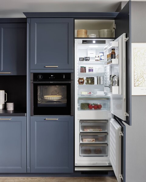 Die Bevorratungszone ist der Ausgangspunkt für alle Arbeitsabläufe in der Küche. Hier befinden sich Kühlschrank, Gefrierschrank und Vorratsschränke für haltbare Lebensmittel. Übersichtliche Auszugssysteme, Apothekerschränke und schwenkbare Schubladen machen es Dir leicht, Ordnung zu halten: Statt lange zu suchen oder Vorräte umzuräumen, hast Du alles sauber sortiert und sofort griffbereit.