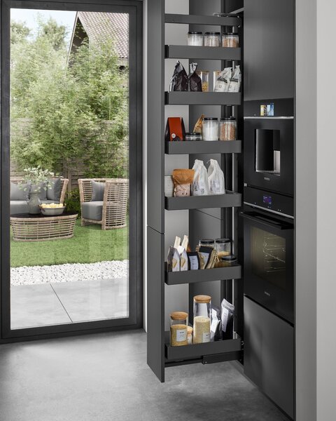 • Kombination aus hohen Schränken und Vollauszügen für leichte Zugänglichkeit