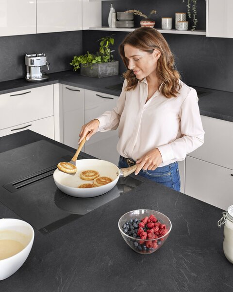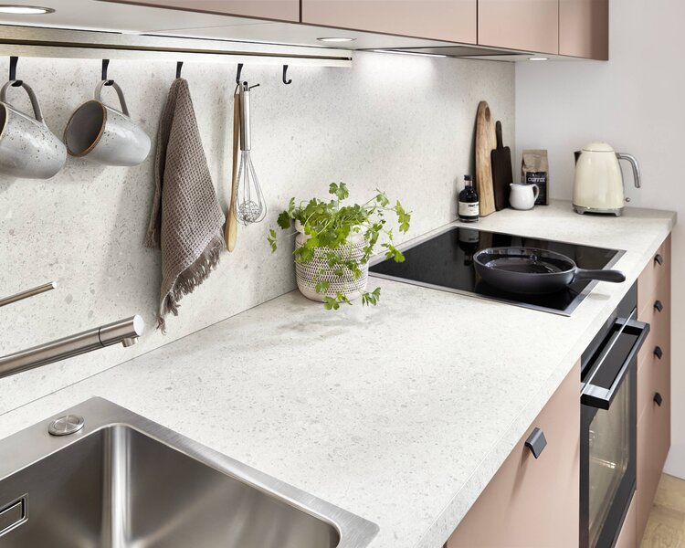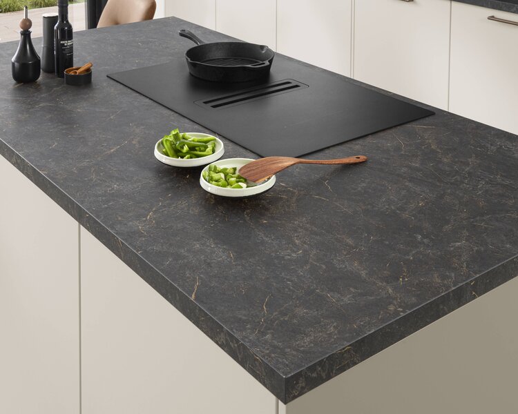 Damit das Arbeiten zwischen Vorbereitungs- und Kochzone flüssig vonstattengeht, sollte die Arbeitsplatte feuerfest und kratzbeständig sein. So können heiße Töpfe zwischengestellt oder Lebensmittel für den Kochtopf vorbereitet werden, ohne dass die Oberfläche Schaden nimmt – ein praktischer Schutz für den hektischen Küchenalltag.