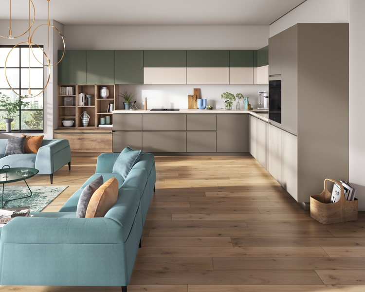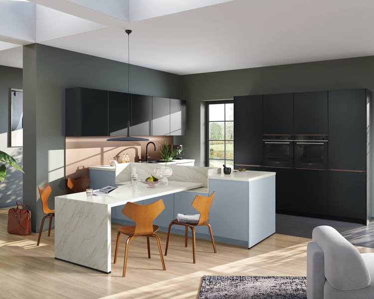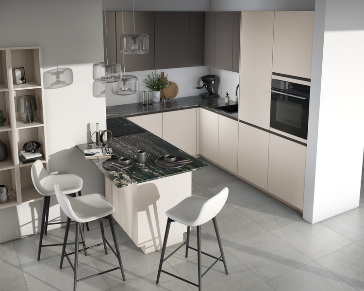 Ob warme Naturtöne wie Sandbeige und Taupegrau, sanfte Pastellfarben oder mutige Multicolor-Kombinationen – Farben setzen starke Akzente und sorgen für eine individuelle Raumgestaltung. Besonders angesagt sind Kombinationen aus verschiedenen Farbtönen, die lebendige Kontraste schaffen und die Persönlichkeit der Bewohner widerspiegeln. Black Green Seidenmatt in Kombination mit heller Marmoroptik oder Orientrot mit tiefem Waldgrün – der Kreativität sind keine Grenzen gesetzt. Auch Metallic-Töne und dunkle Farbnuancen setzen stilvolle Akzente und verleihen der Küche eine edle Note.